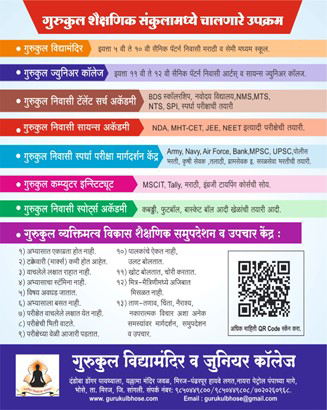 PCMB, NDA, MHT-CET, JEE, NEET इत्यादी परीक्षाची परिपूर्ण तयारी करुण घेणारी गुरुकुल सायन्स निविसी अकॅडमी.